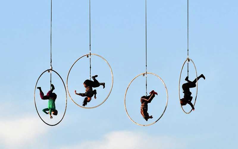 آویزان شدن اعضای یک گروه تئاتبر در رم ایتالیا