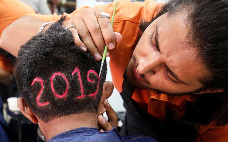 درج سال ۲۰۱۹ پشت سر یک مشتری توسط آرایشگری در احمدآباد هند