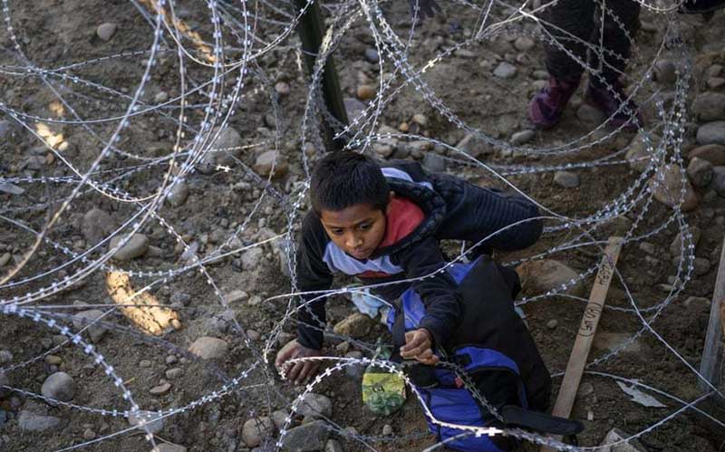 گیر کردن یک کودک مهاجر در سیم خاردارهای حصار مرزی آمریکا