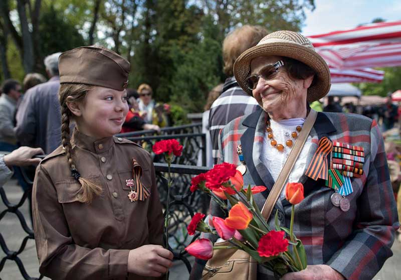 تاتیانا آریپووا افروس ۹۷ ساله، کهنه سرباز جنگ جهانی دوم، در جریان جشن روز پیروزی متفقین در لیتوانی