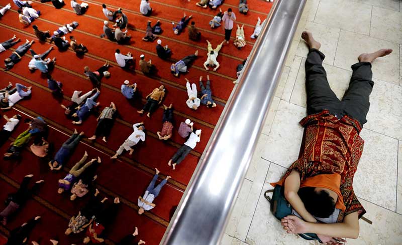 استراحت مسلمانان روزه دار در مسجد استقلال جاکارتای اندونزی