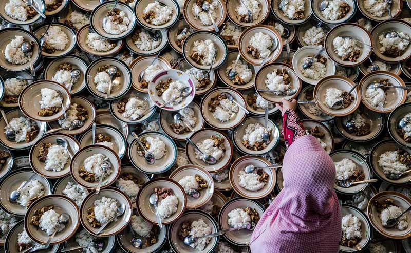 آماده کردن افطار برای مسلمانان روزه دار در اندونزی