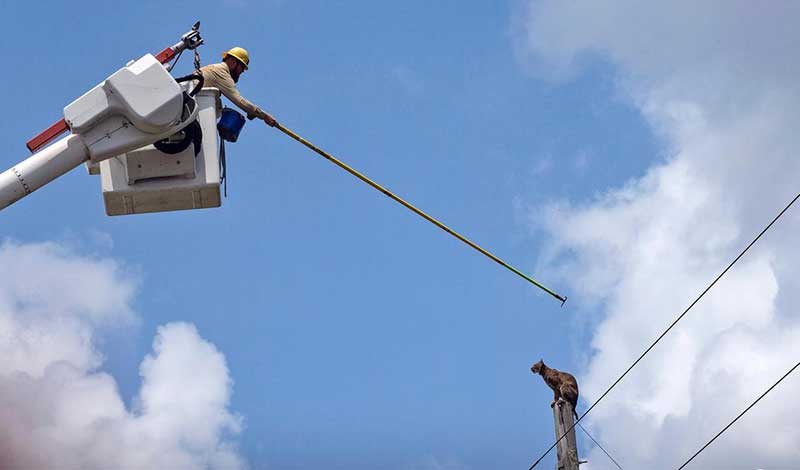 تلاش برای پایین آوردن یک گربه دمکوتاه از روی تیر چراغ برق در فلوریدا