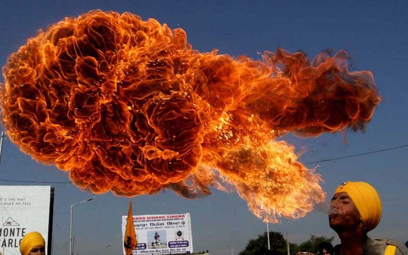 آتش بازی یک سیک در یک مراسم مذهبی در جاموی هند