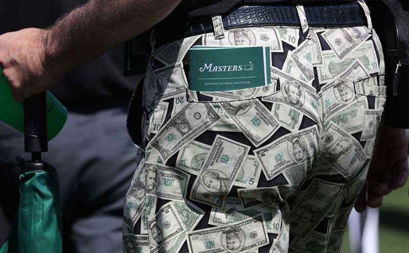 شلوار دوخته شده با دلار یک گلف باز در جورجیای آمریکا