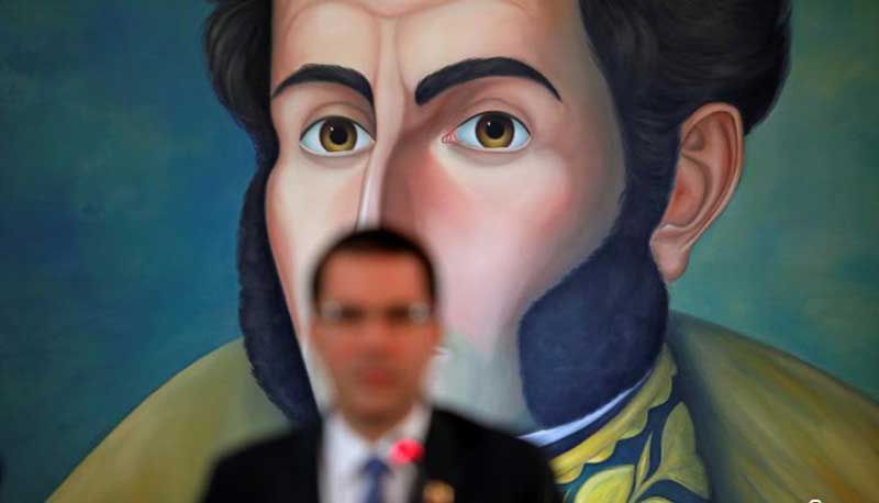 وزیر امور خارجه ونزوئلا مقابل نقاشی سیمون بولیوار