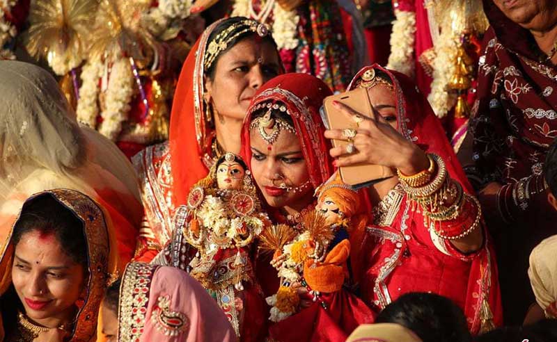 زنان شرکت کننده در جشنواره الهه هندوها در هند