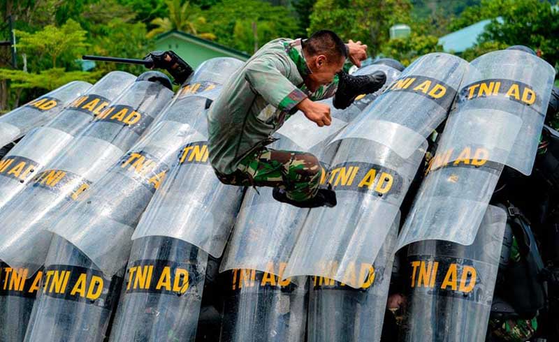 تمرین نیروهای نظامی اندونزی پیش از برگزاری انتخابات