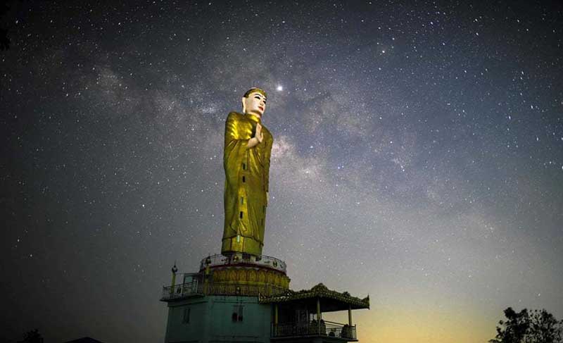کهکشان راه شیری بر فراز یک مجسمه در یانگون میانمار