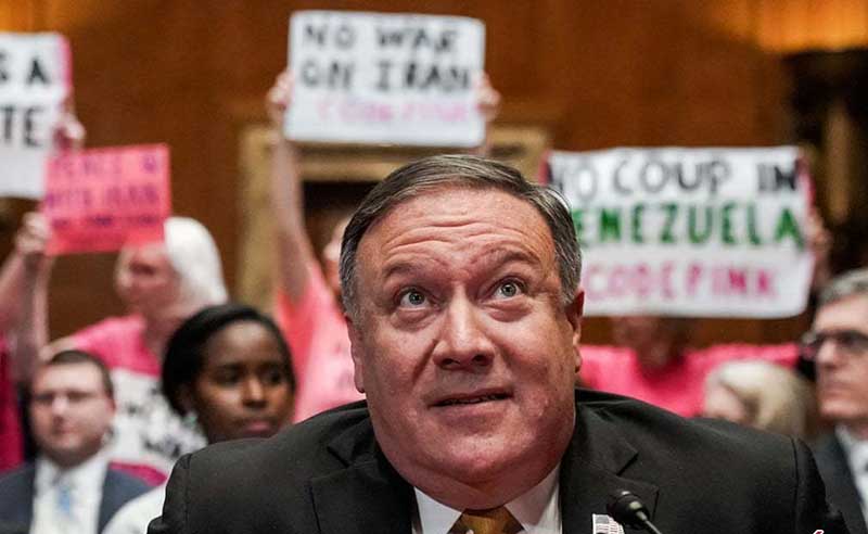 اعتراضات پشت سر مایک پمپئو هنگام سخنرانی در مجلس سنا