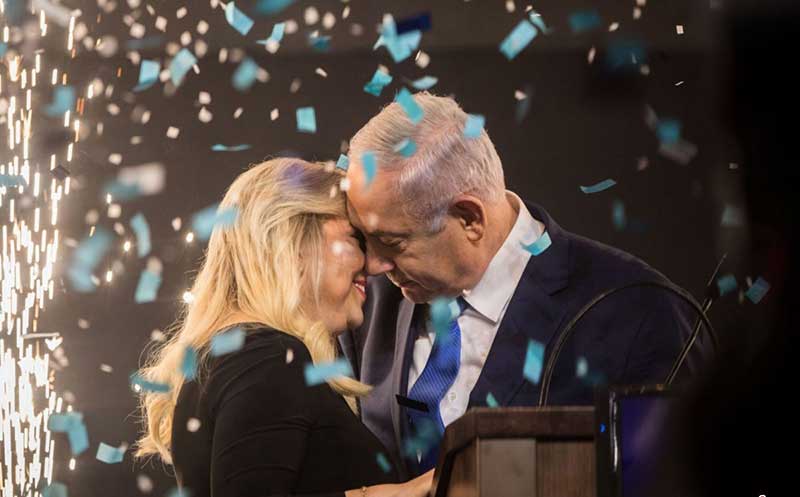 بنیامین نتانیاهو و همسرش سارا پس از شرکت در انتخابات پارلمانی اسرائیل