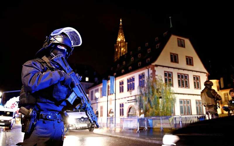 نیروهای امنیتی فرانسه در محل وقوع حمله تروریستی در استراسبورگ
