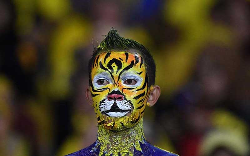 یک طرفدار مسابقه فوتبال بین دو تیم مالزی و ویتنام