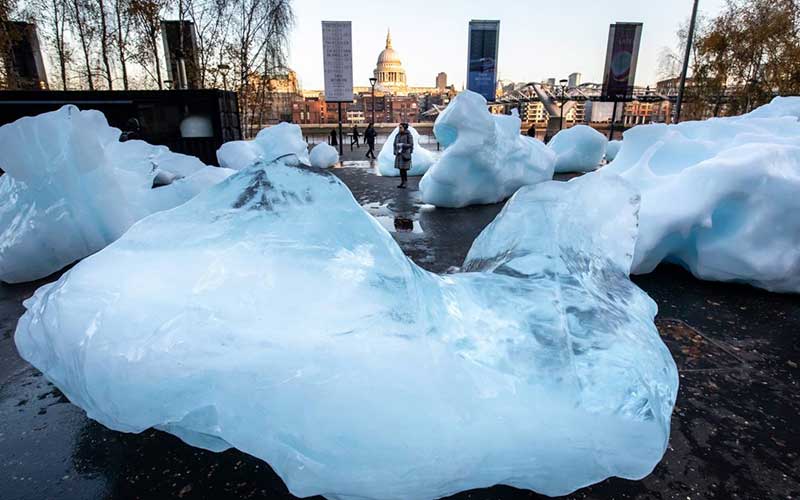 تکه های یخی اثر یک هنرمند در خیابانی در لندن