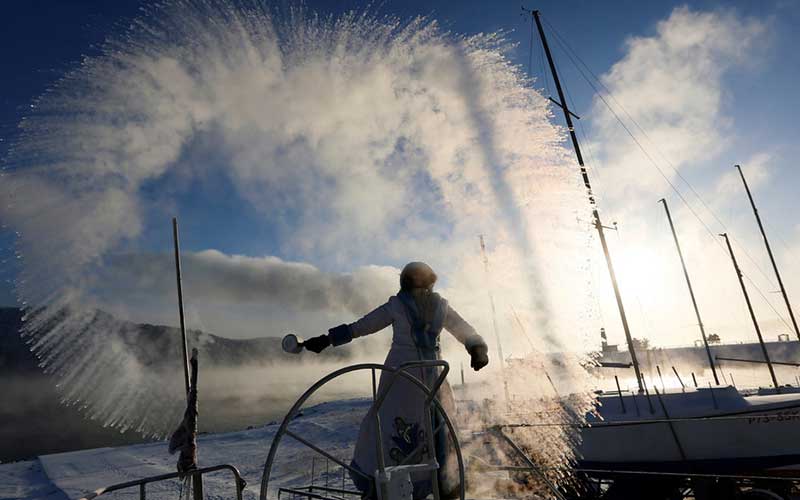 یخ زدن آب در هوای منفی ۳۳ درجه سانتیگراد در سیبری