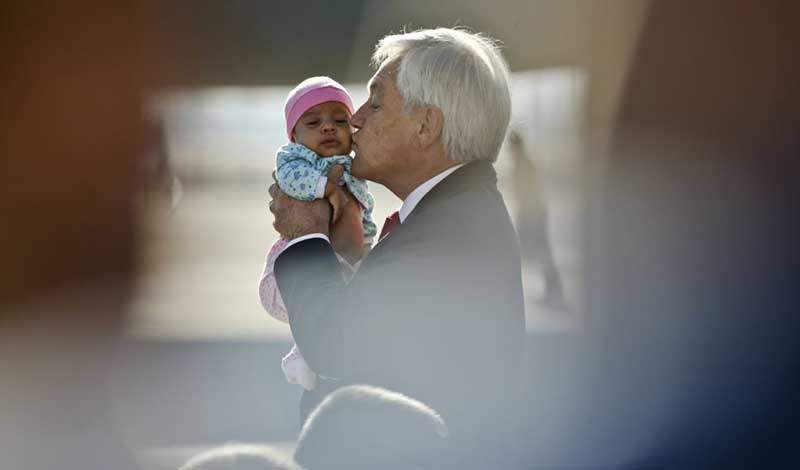 یک کودک در آغوش سباستین پینرا رئیس جمهور شیلی