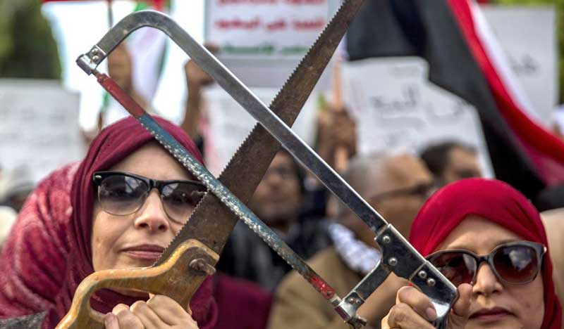 اعتراض با اره در واکنش به سفر محمد بن سلمان ولیعهد عربستان به تونس