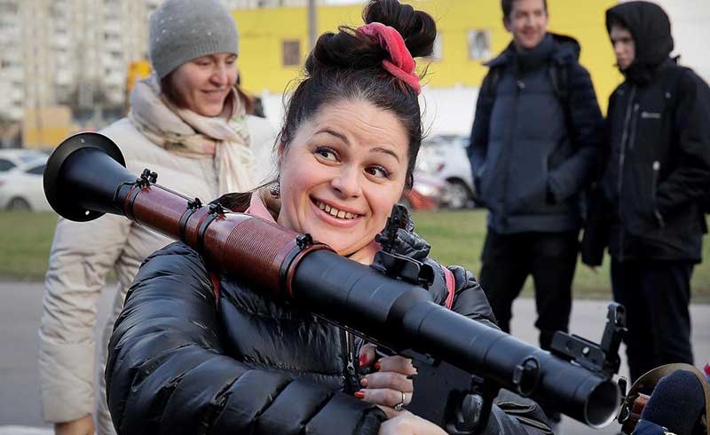 یک زن با آرپی جی در نمایشگاه اسلحه در سن پترزبورگ روسیه