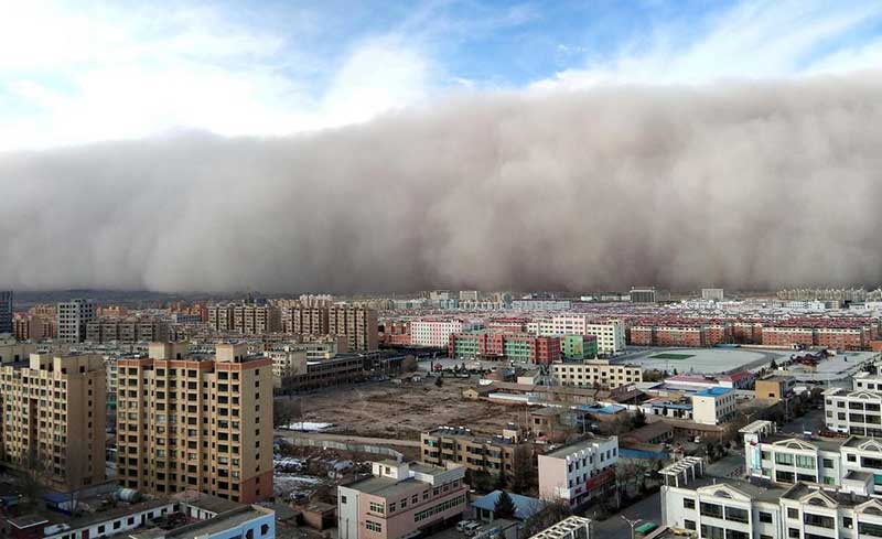 طوفان شن بر فراز شهر ژانگویه در استان گانسو چین
