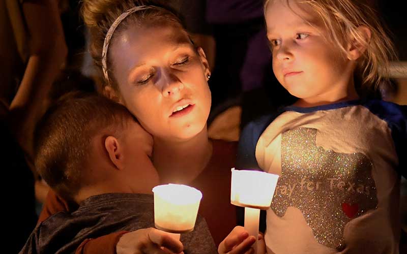 سوگواری یک زن با روشن کردن شمع برای قربانیان حمله تروریستی تگزاس آمریکا