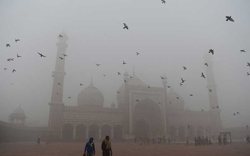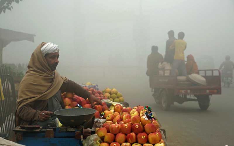 یک میوه فروش خیابانی در هوای آلوده لاهور پاکستان