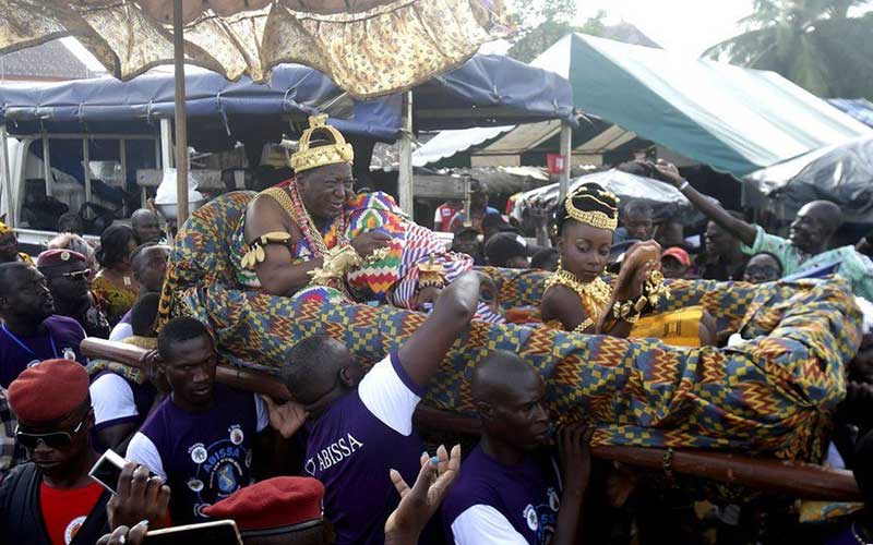 یک پادشاه با کودک در منطقه گراند بسام ساحل عاج