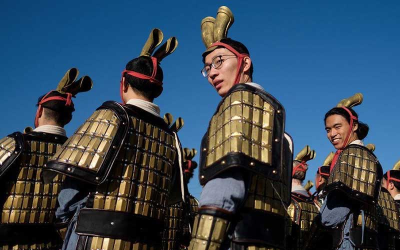 مردان چینی با لباس سنتی در جشنواره ای در لندن