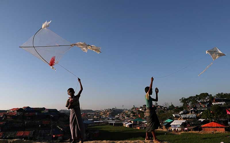 بادبادک بازی کودکان آواره روهینگیا در اردوگاه آوارگان بنگلادش