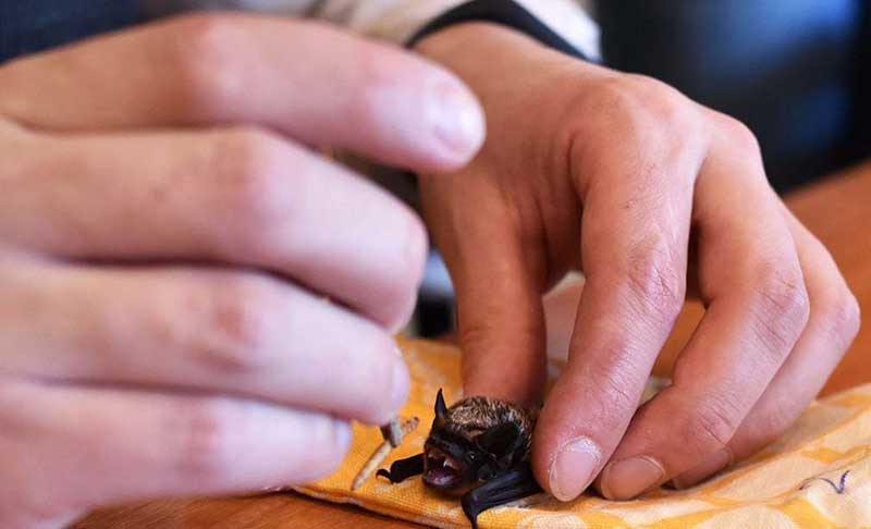یک خفاش در یک مرکز نجات در مینسک بلاروس