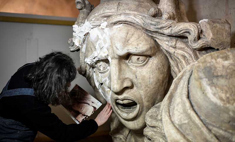 ترمیم یک مجسمه تاریخی آسیب دیده در اعتراضات فرانسه