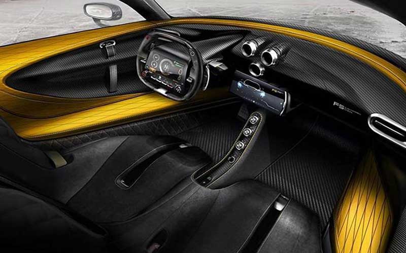 در بخش بالایی فرمان یک نوار قرمز رنگ دیده میشود که مشخص نیست چراغ نشان دهندهی تعویض دنده است یا فقط یک طرح برای زیبا کردن فرمان. در پشت فرمان، پدالهای تعویض دنده و پنل کاملا دیجیتال قرار دارد که نشان «ERS» به معنی سیستم بازیابی انرژی، در آن جلب توجه میکند. در تصاویر منتشر شدهی پیشین، فیبرکربن و سه دریچه هوای مثلثی شکل که مانند طرح اگزوز ونوم F5 است، نمایش داده شده بود.