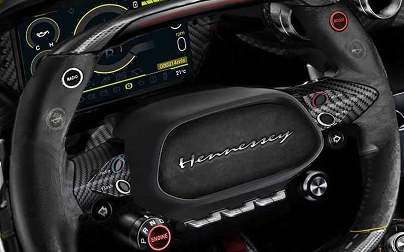 ابرخودروی جدید شرکت آمریکایی هنسی (Hennessey) موسوم به ونوم F5، چند هفته پیش در لاس وگاس و در جریان در نمایشگاه سما (SEMA) رونمایی شد. از زمان رونمایی ونوم F5 تا به امروز، فقط یک تصویر از کابین آن که بخشی از داشبورد فیبرکربنی را نمایش میداد، منتشر شده بود، اما امروز تصاویر کاملی از کابین ابرخودروی هنسی منتشر شد تا طراحی فرمان و پنل پشت آن مشخص شود.