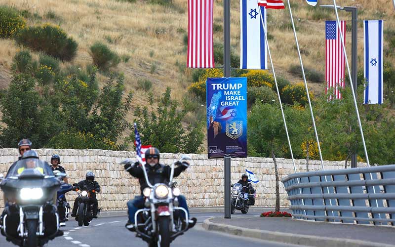 در آستانه مراسم امروز شهر قدس که شهری مقدس هم برای یهودیان، هم برای مسلمانان و هم مسیحیان محسوب میشود با گلکاریهایی به شکل پرچم آمریکا و پوسترهایی که روی آن نوشته شده بود “ترامپ اسرائیل را دوباره عظمت ببخش” تزیین شده بود.