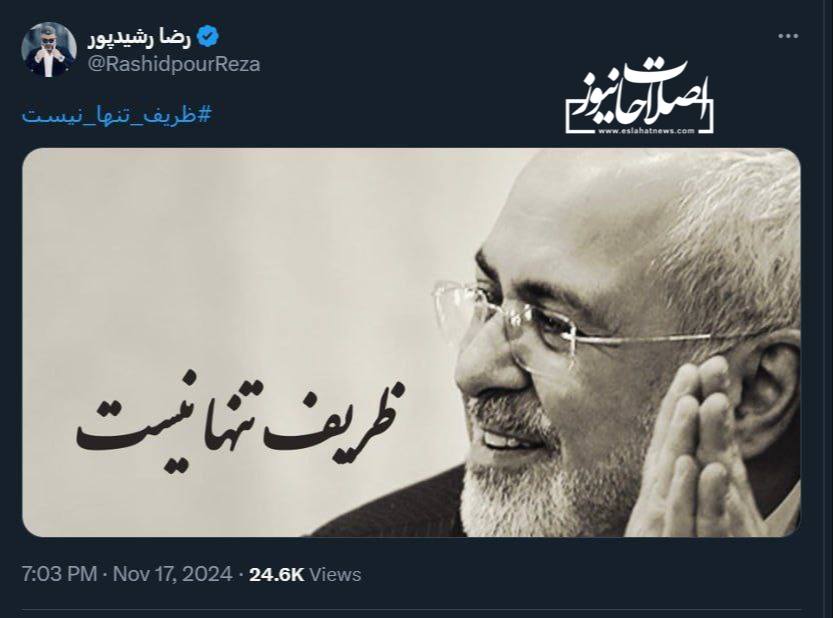 رضا رشیدپور با انتشار عکسی از ظریف در توییتر نوشت: ظریف تنها نیست.