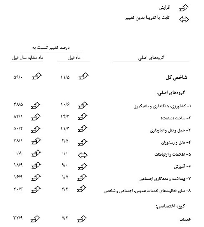 خلاصه نتایج به‌دست آمده از شاخص بهای تولیدکننده در ایران براساس سال پایه ۱۰۰=۱۳۹۵ به شرح زیر است: