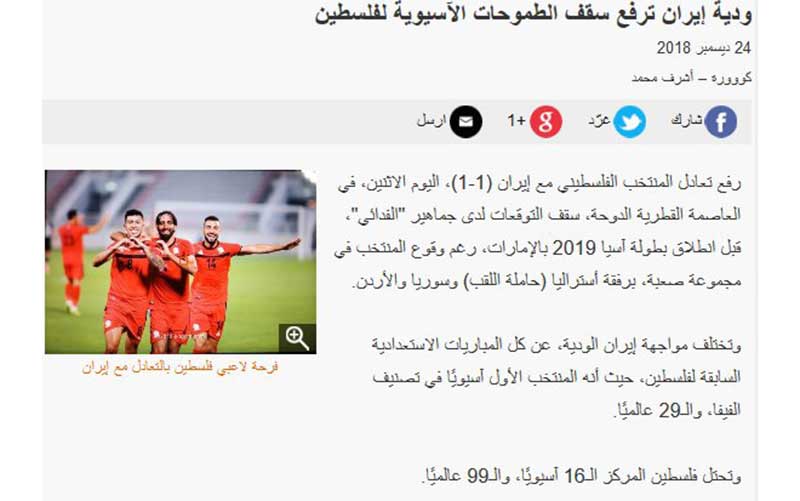 سایت عربی زبان «کوره» با اشاره به این مسابقه اعلام کرد که دیدار با ایران، سقف توقعات و آرزوهای مردم فلسطین را بالا برده است!