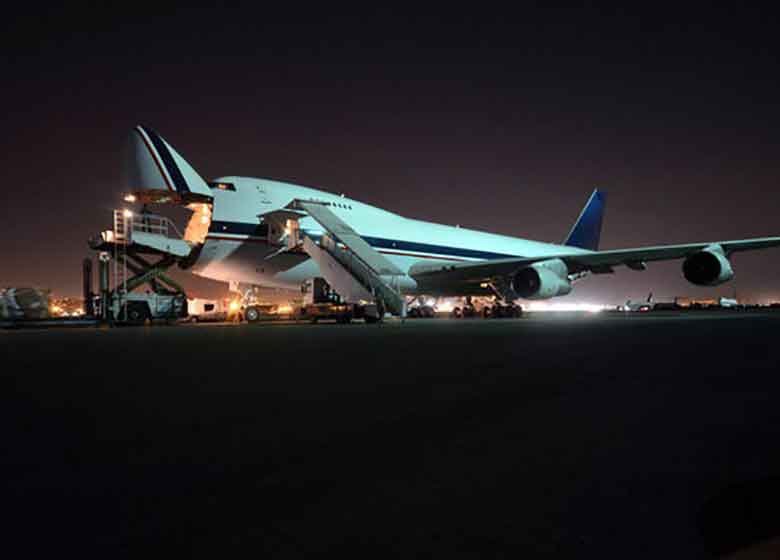 هواپیمای بوئینگ ۷۴۷ در حال بارگیری