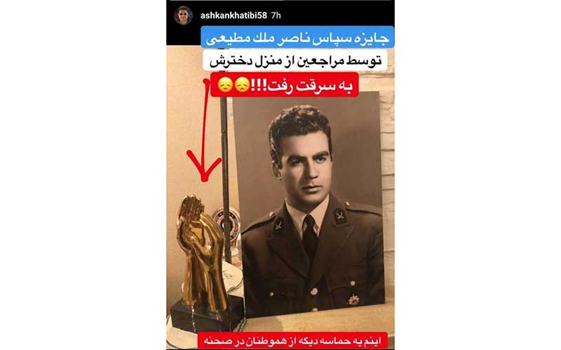 اشکان خطیبی، بازیگر سینما و تلویزیون خبر از به سرقت رفتن جایزه بازیگری ناصر ملکمطیعی در خانه دخترش داد.