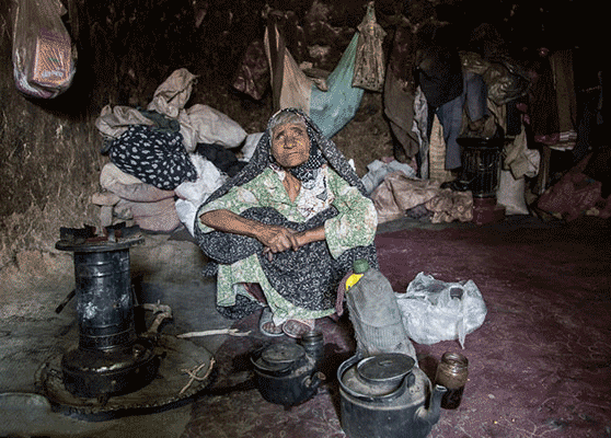 در این بیغولههای فاقد امکانات کودکان ضعیف و پیرزنان و پیرمردان فرتوتی زندگی میکنند که نه غذایی مناسب برای خوردن دارند و نه شرایط بهداشتی مناسب سنو سالشان. سقف اتاقها چوبی است، دیواره ها از سنگ ساخته شده .کف اتاقها خاکی است و معمولا با زیراندازهایی مستعمل و پاره پوشانده شده است. پیرمردی ۱۰۰ ساله با صدایی لرزان که گویی از ته چاهی عمیق میآید از نداشتن خانهای مناسب برای زندگی گلایه میکند