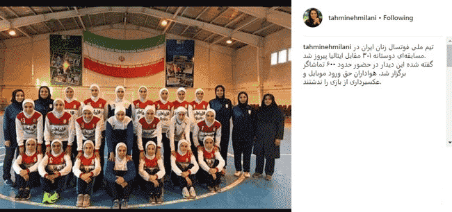 تهمینه میلانی در واکنش به برگزاری دیدار دوستانه تیمهای ملی فوتسال بانوان ایران و ایتالیا پستی را به اشتراک گذاشت.