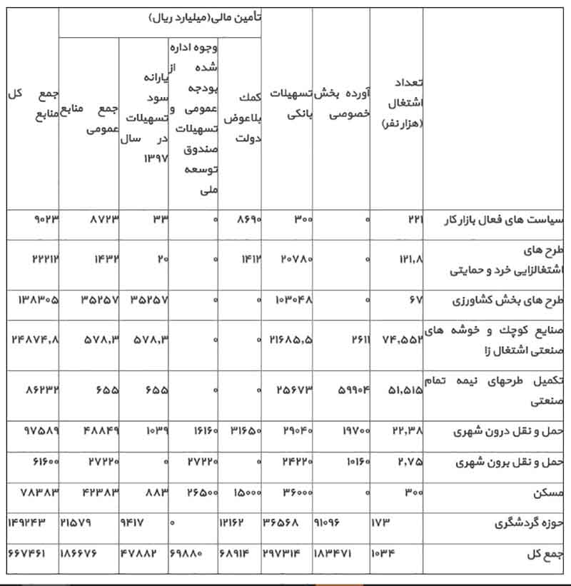 علاوه بر این جدول ذیل بند ج تبصره ۱۶، برنامه اشتغال حمایتی دولت پیشنهاد شده که پیشبینی میشود اشتغال حدود ۸۰ هزار نفر را در پی داشته باشد.