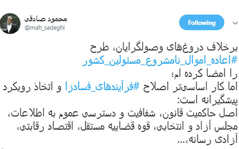 توئیت محمود صادقی نماینده اصلاح طلب در این باره