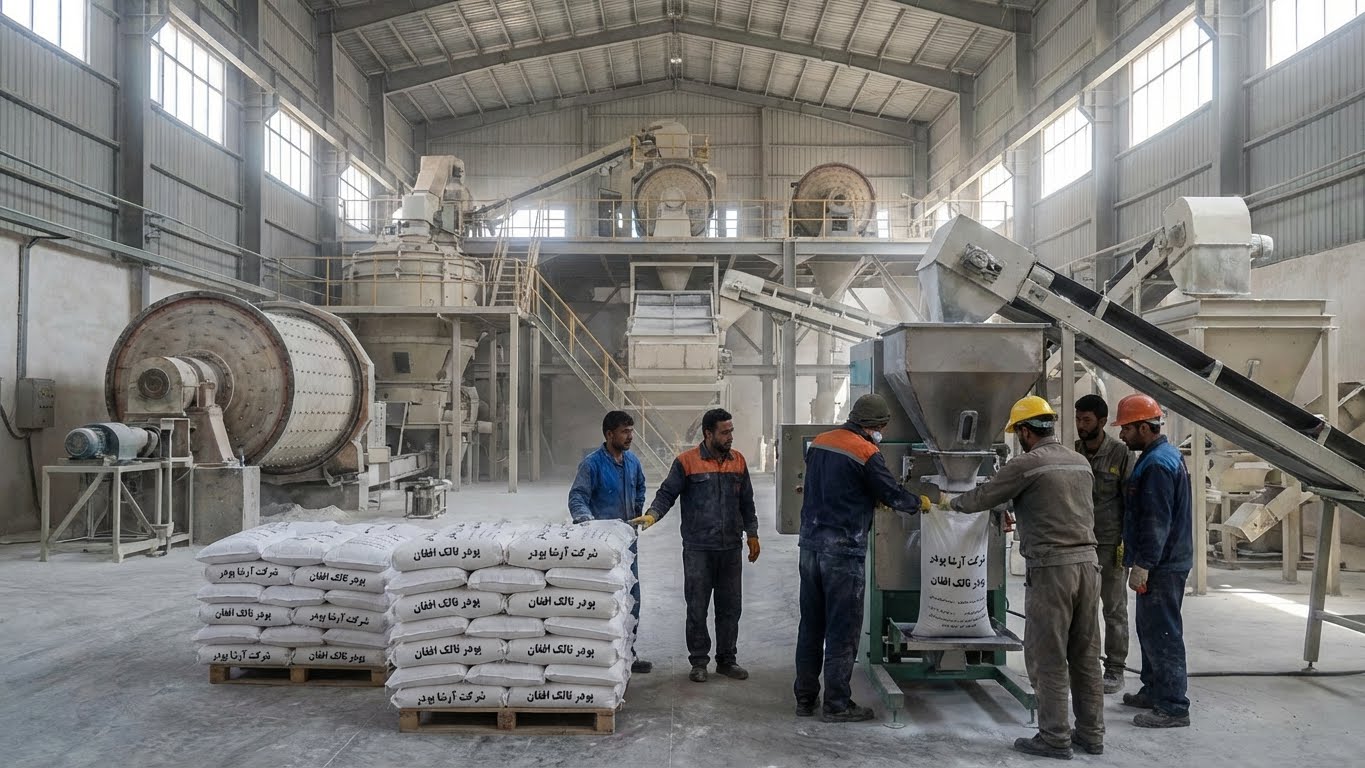 - سیستم بستهبندی و لجستیک: تالک به رطوبت حساس است. یک تولیدکننده معتبر از کیسههای لمینتدار چند لایه و پالتهای شرینک شده استفاده میکند تا بار در مسیر طولانی حملونقل از افغانستان تا ایران آسیب نبیند.