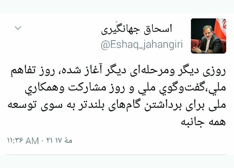 توییت جدید اسحاق جهانگیری به شرح ذیل است:
