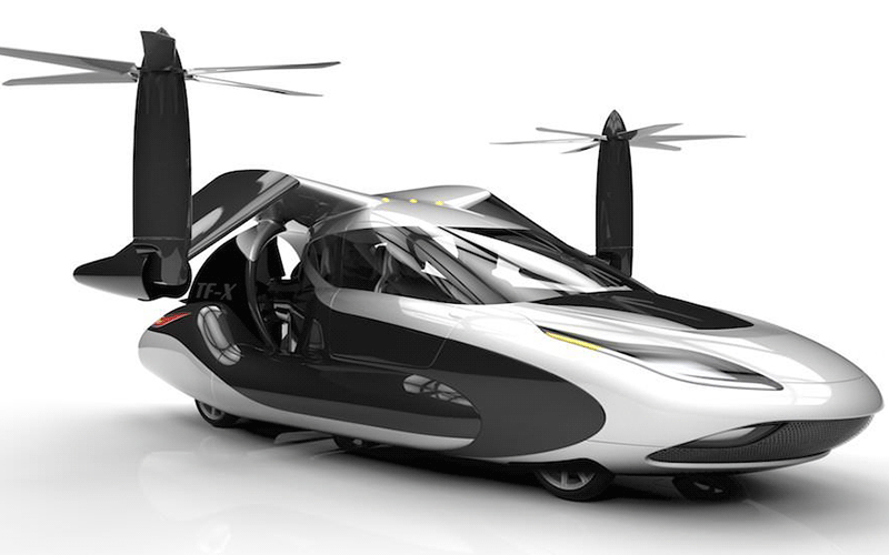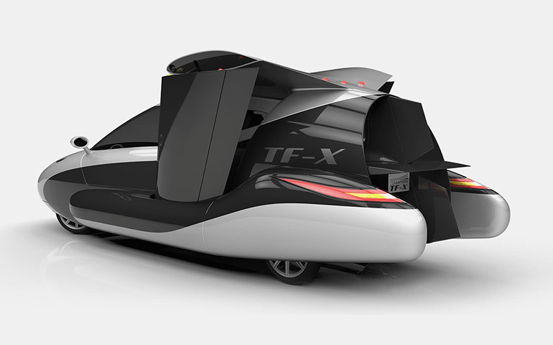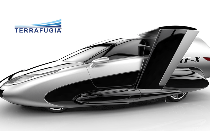 شرکت ترافوگیا، از سال ۲۰۰۶ فعالیت خود را با ساخت نمونههای پروتوتایپ از پیشرانههای احتراق داخلی که ترکیبی از خودرو و هواپیما هستند، آغاز کرد. اولین نمونهی خودروی پرندهی این شرکت، در سال ۲۰۱۹ به بازار عرضه خواهد شد. هدف نهایی مهندسان ترافوگیا، تولید خودرویی عمود پرواز موسوم به TF-X است؛ این خودروی پرنده از سیستم قوای محرکهی هیبرید استفاده میکند و انتظار میرود که توانایی طی کردن مسافتی بیش از ۸۰۰ کیلومتر با یک بار شارژ داشته باشد.