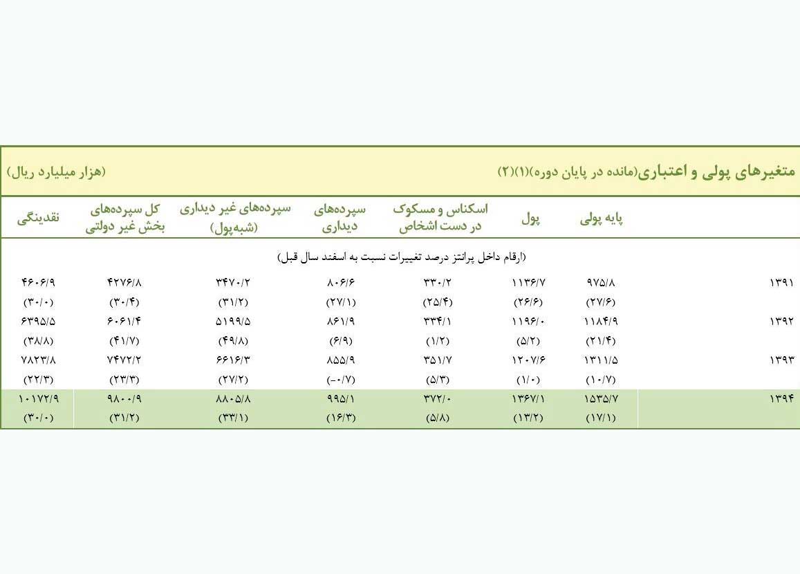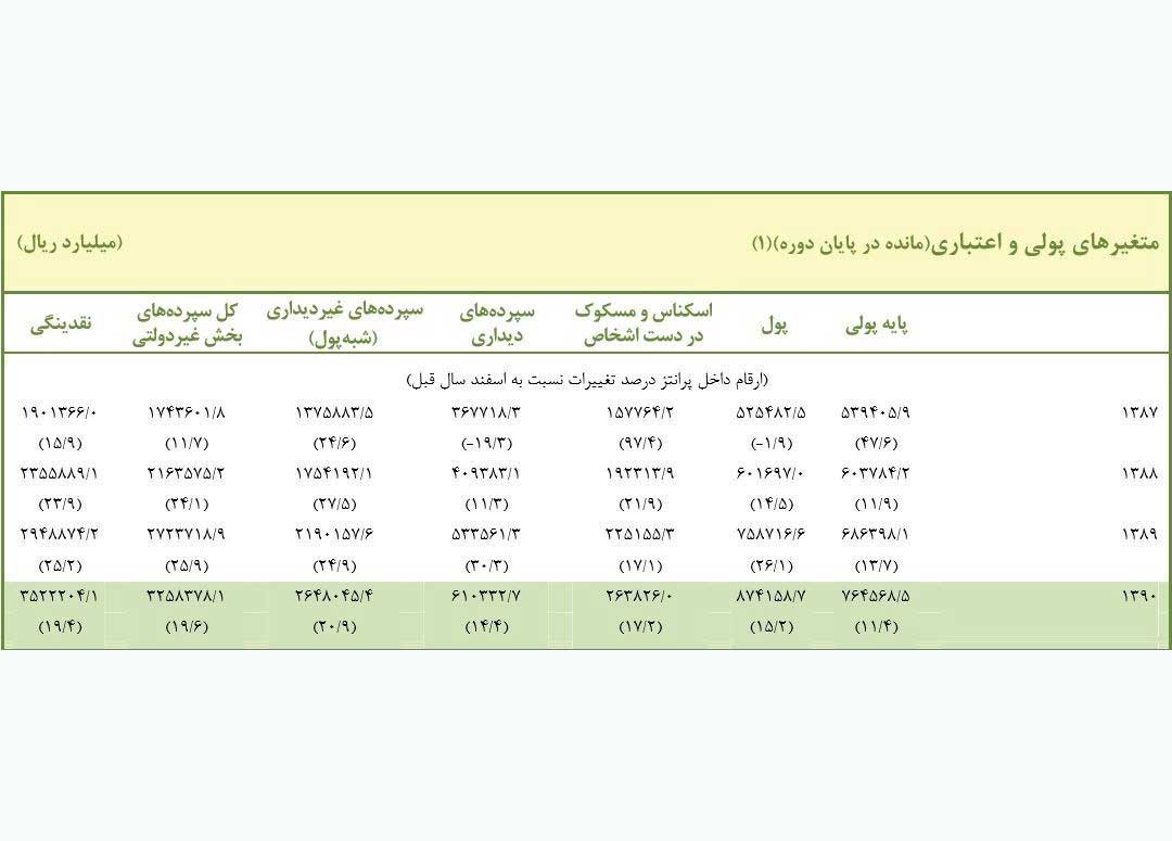 این در حالی است که طبق گزارش نماگرهای بانک مرکزی، نرخ رشد نقدینگی در سالهای ۸۸ تا ۹۱ به ترتیب، ۲۳.۹ درصد، ۲۵.۲ درصد، ۱۹.۴ درصد و ۳۰ درصد بوده که متوسط نرخ رشد نقدینگی در دولت قبل ۲۴.۶ درصد می شود.