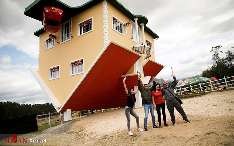 تصاویری از خانهای در کلمبیا که بصورت وارونه ساخته شده است و گردشگران برای گرفت عکسهای وارونه به این خانه میروند.