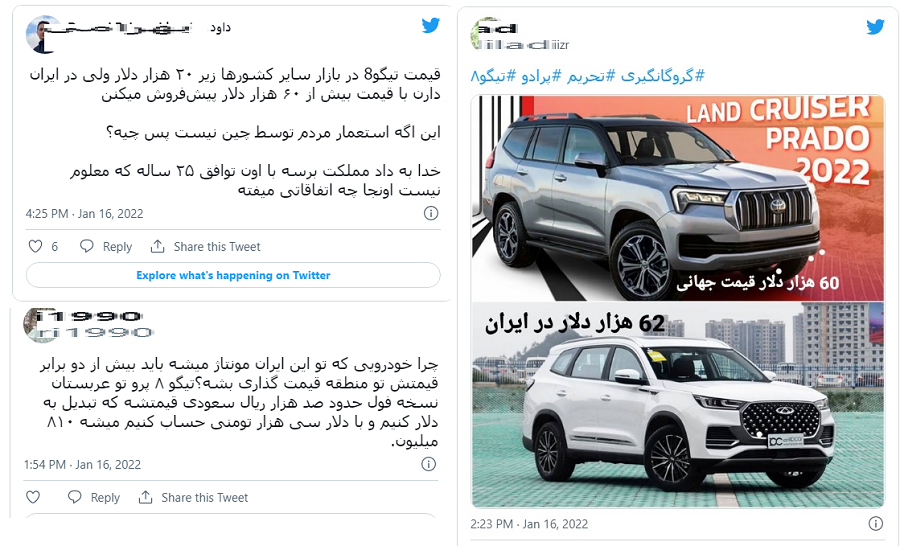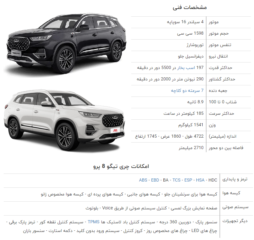 به این ترتیب تیگو ۸ پرو گرانترین محصول چینی بازار ایران خواهد بود که با قیمت متوسط ۱۹ هزار دلاری در بازار جهانی و با اعتماد به نفس تمام، ۲۵۰ درصد بیشتر از قیمت واقعی در بازار آشفته ایران به فروش خواهد رسید.