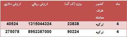 بر اساس آمار گمرک به گزارش بازتاب، در تیرماه سال ۱۳۹۶ قریب به ۱۱۴ تن آدامس بدون قند، به ارزش ریالی ۱۰۲۶۷۴۳۱۳۲۴ و ارزش دلاری ۳۱۵۶۰۲ از ترکیه وارد کشور شده است.