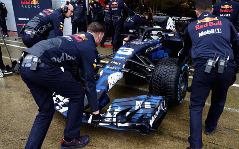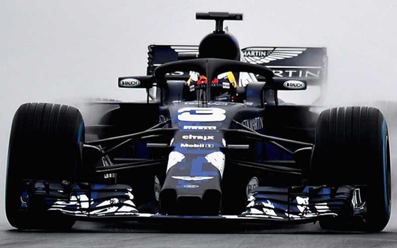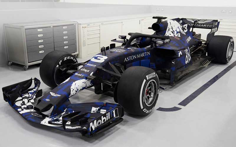 با اینحال این نسخهی ویژه در جریان روز فیلمبرداری پیش از فصل در پیست سیلوراستون انگلستان توسط ریکاردو، هر چند به دلیل قوانین در محدودیت مسافت ۱۰۰ کیلومتری، به نمایش درآمد. نشان شرکت خودروساز بریتانیایی استون مارتین در بخشهایی از بدنه، بهخصوص بالهی عقب جلب توجه میکند. استون مارتین هدف جدی خود برای شرکت در مسابقات فرمول یک را با اسپانسری تیم ردبول در فصل ۲۰۱۸ آغاز کرده است.